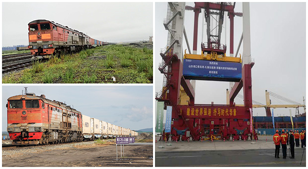 2020年,圓滿完成琿春-扎魯比諾港-青島港內(nèi)貿(mào)貨物跨境運輸航線首航、啟動琿春—馬哈林諾鐵路口岸經(jīng)俄遠東哈桑支線至朝鮮豆?jié)M江、啟動俄羅斯-琿春海洋班列